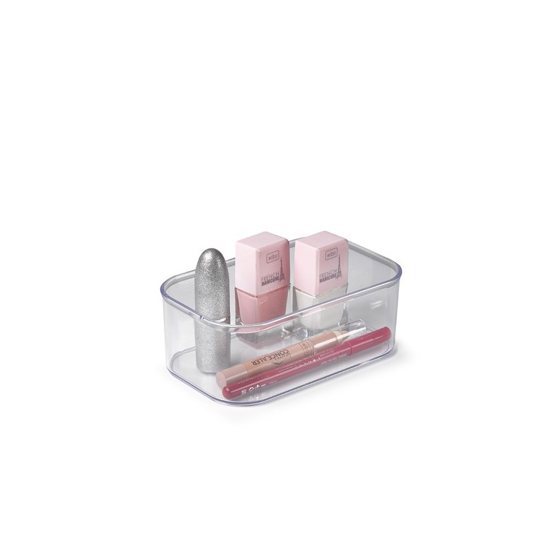 Bandeja organizadora transparente pensada para almacenaje y organización en cajones. 8,5 x 14,2 x 5,2 cm.