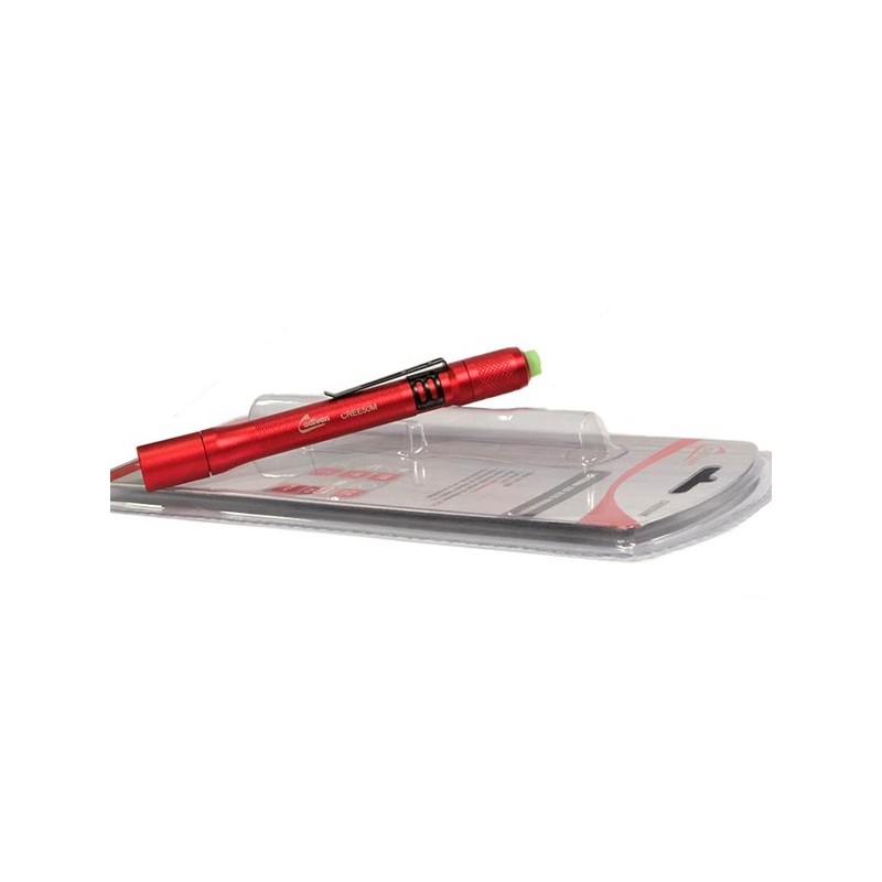 En aluminio. Con 2 baterías AAA. 50 m. distancia máxima. Resistente al agua. 100 lm-30 lm.