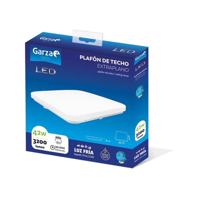 Potencia 42 W. 3200 Lm. Tamaño 43 x 43 cm. Luz fría (6.500 K).