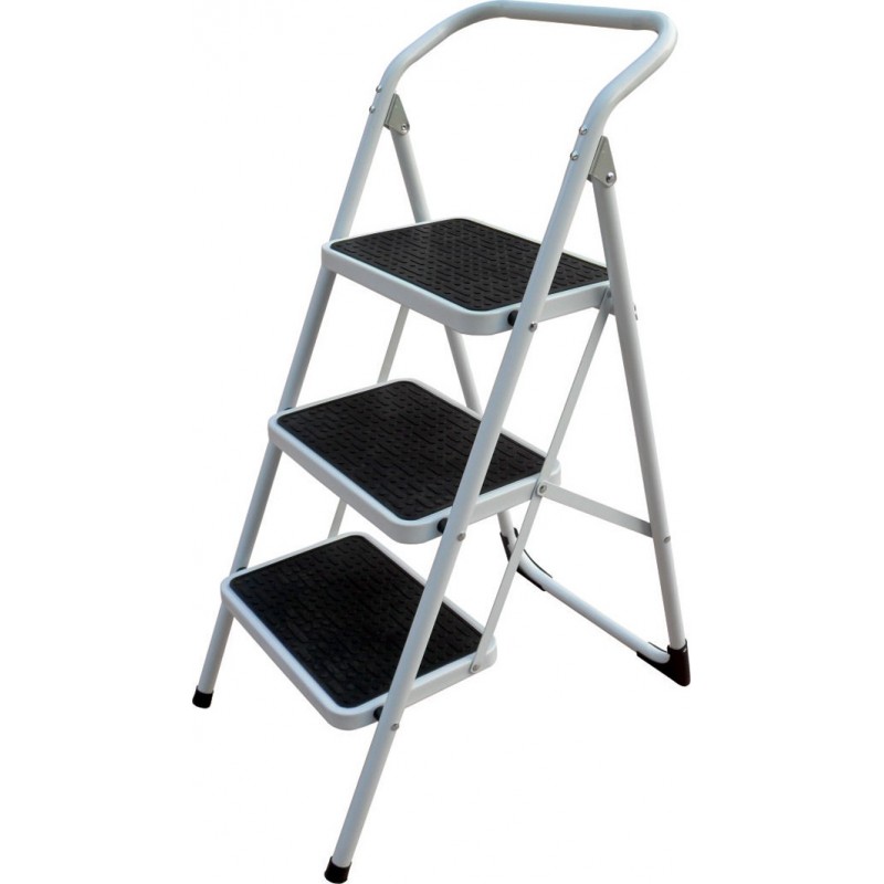 Taburete plegable de acero. Amplios y cómodos peldaños de acero de 38 x 26 cm. Superficie de protección antideslizante. Sistema de seguridad anticierre. Certificación EN-14183-150 kg. 3 peldaños.