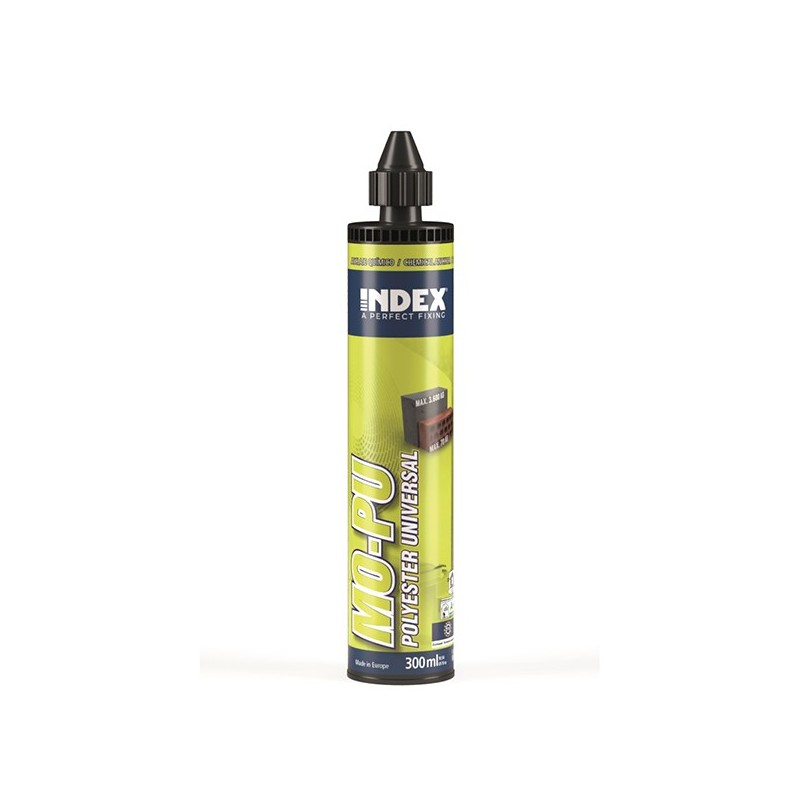 Resina poliester Universal para todo tipo de materiales. Homologación Europea CEE para Hormigón. Válido para todas las aplicaciones en hormigón y mampostería. Empleo para cargas medias. Válido para taladros secos, húmedos e inundados. 300 ml.