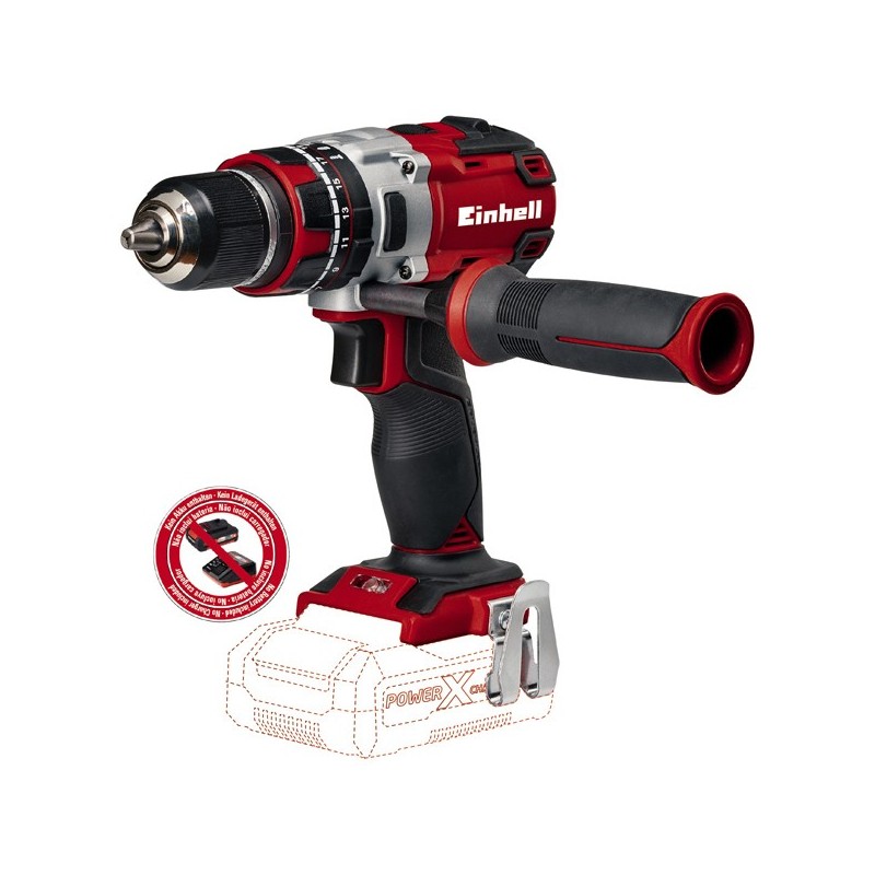 Batería Li-Ion Voltaje 18 V D.C. Caja de engranajes metálica, portabrocas metálico 13 mm, par de apriete 60 Nm. Electrónico. 2 Velocidades. Par de apriete 23 + 1.