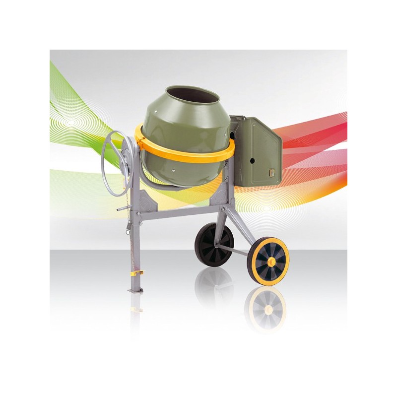 Hormigonera reforzada plegable, bastidor desmontable y reductor de volteo. 0,5 HP. 68 kg.